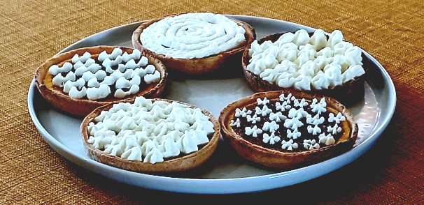 La méthode la plus rapide consiste à garnir la pâte de chaque moule avec le mélange et à mettre au four pendant une vingtaine de minutes. Jusqu’à ce que la garniture commence à dorer. Les tartes ont alors une couleur irrégulière avec du jaune et des zones qui semblent légèrement brûlées. Pour rendre le dessus plus esthétique on peut faire des décorations avec une ganache au mascarpone. L’élaboration de cette ganache est expliquée dans la recette du carrot cake.